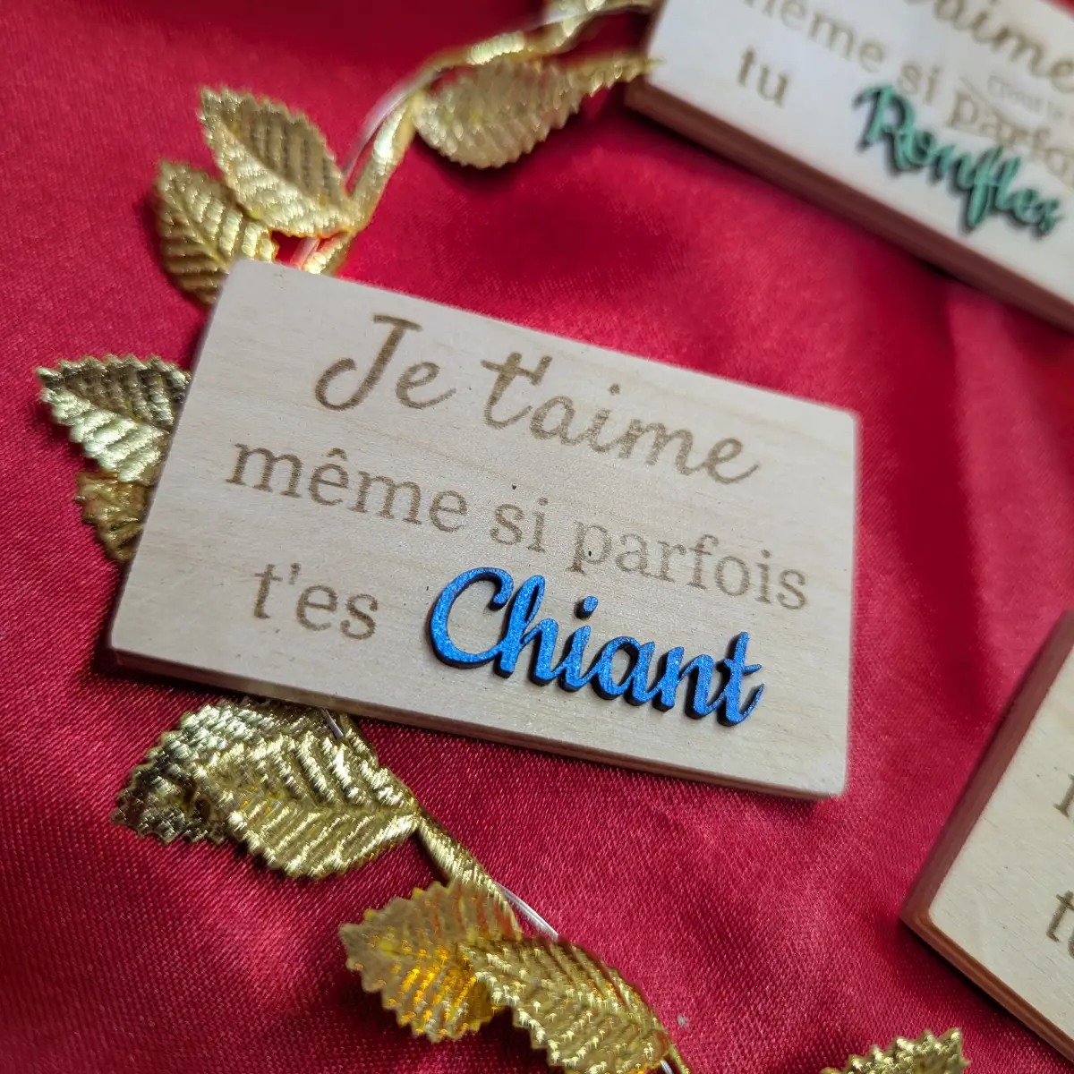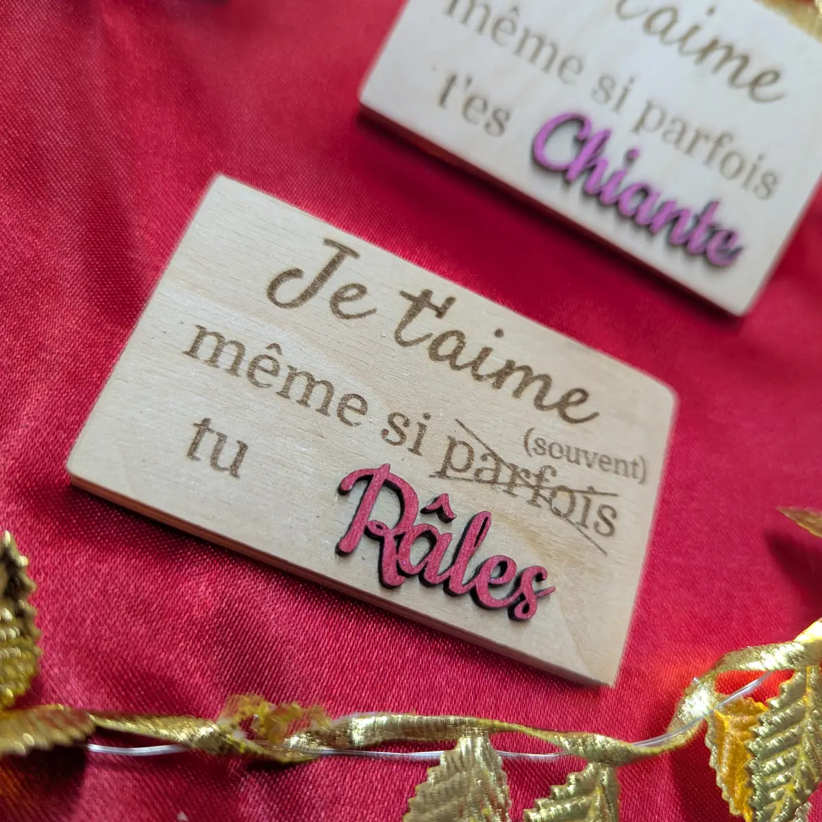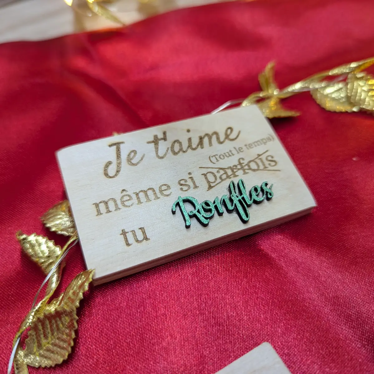 Dites-lui « Je t’aime » sans chichis ! Ce magnet en bois artisanal est l’attention parfaite pour ceux qui s’aiment avec leurs qualités… et surtout leurs petits défauts. Parce que la vraie vie, c’est de s’aimer même quand on ronfle ou qu’on râle.
