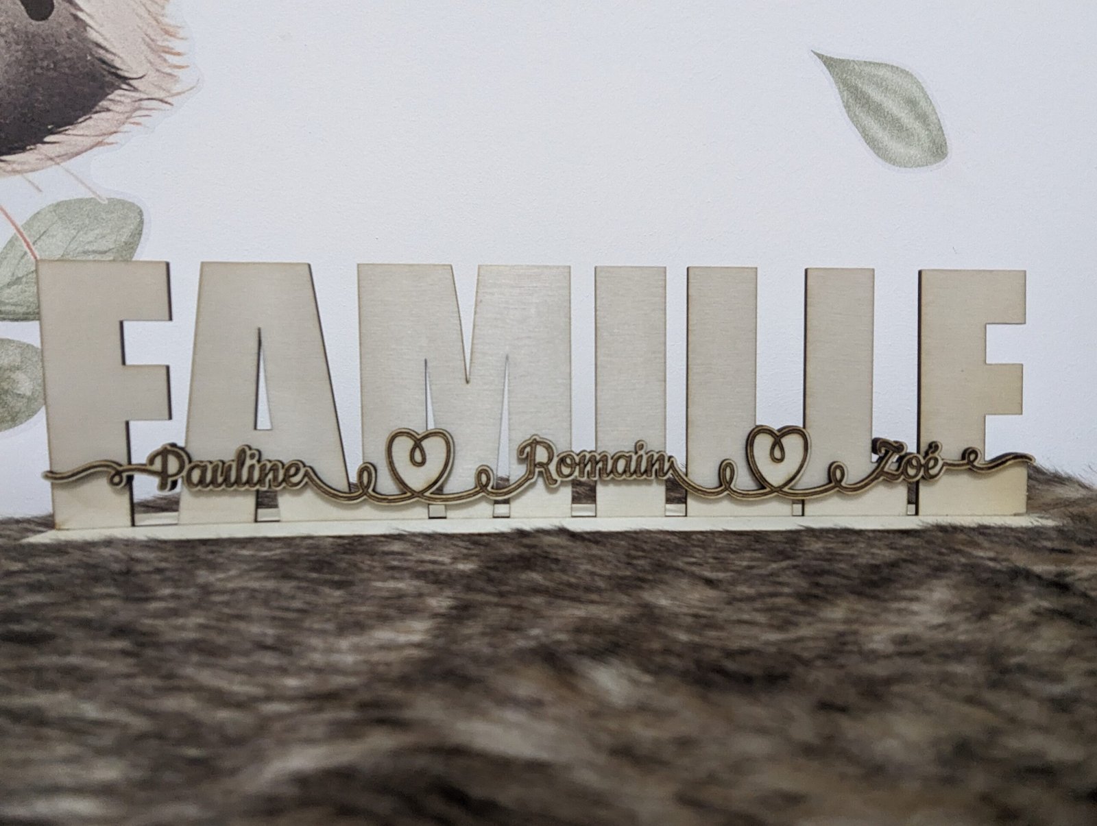 Découvrez cette magnifique décoration personnalisée en bois « Famille », une pièce unique et chaleureuse pour sublimer votre intérieur. Cette création artisanale met en valeur le mot « Famille » et se distingue par l’ajout des prénoms de vos proches, séparés par de délicats cœurs. Si le nombre ou la taille des prénoms ne permettent pas cette disposition, j’adapterai avec soin la présentation.